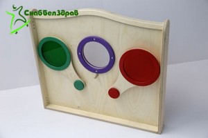 Перемещая одно или несколько цветных стекол к центральному, дети смогут изучать цвета и узнавать, смешивание каких цветов образует новый цвет (синий+желтый=зеленый и т.д.)