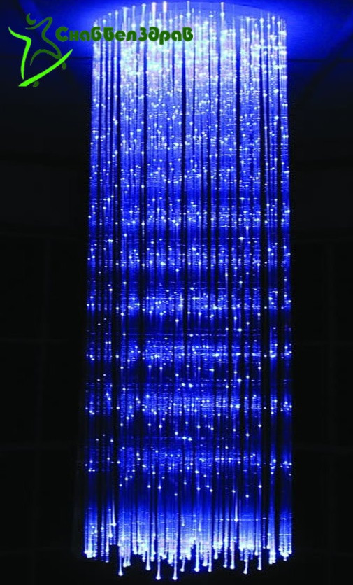 Фибероптическая люстра - это подвесная конструкция, с которой струятся фибероптические волокна. Основание изделия подвесное с встроенным источником света. Каждое волокно в защитной оболочке.